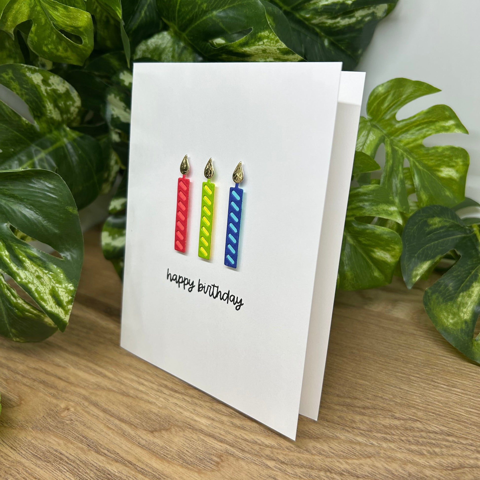 Make someone's birthday extra special with our Birthday Candles Card! This handmade card features paper candles with a golden foil flame, adding a little shine to your celebratory wishes. A perfect way to spread joy and show you care. Light up their day (pun intended)!