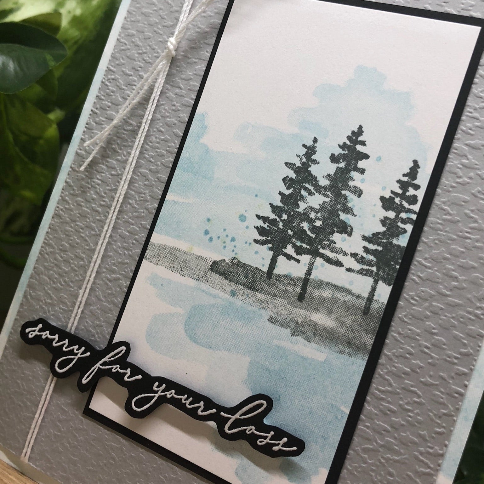 Express your condolences with our Calm Trees Handmade Sympathy Card. Handcrafted with care, this card features a serene image of trees at a lake and the heartfelt message "Sorry for your loss". Share your support and show you care with this thoughtful and unique card.