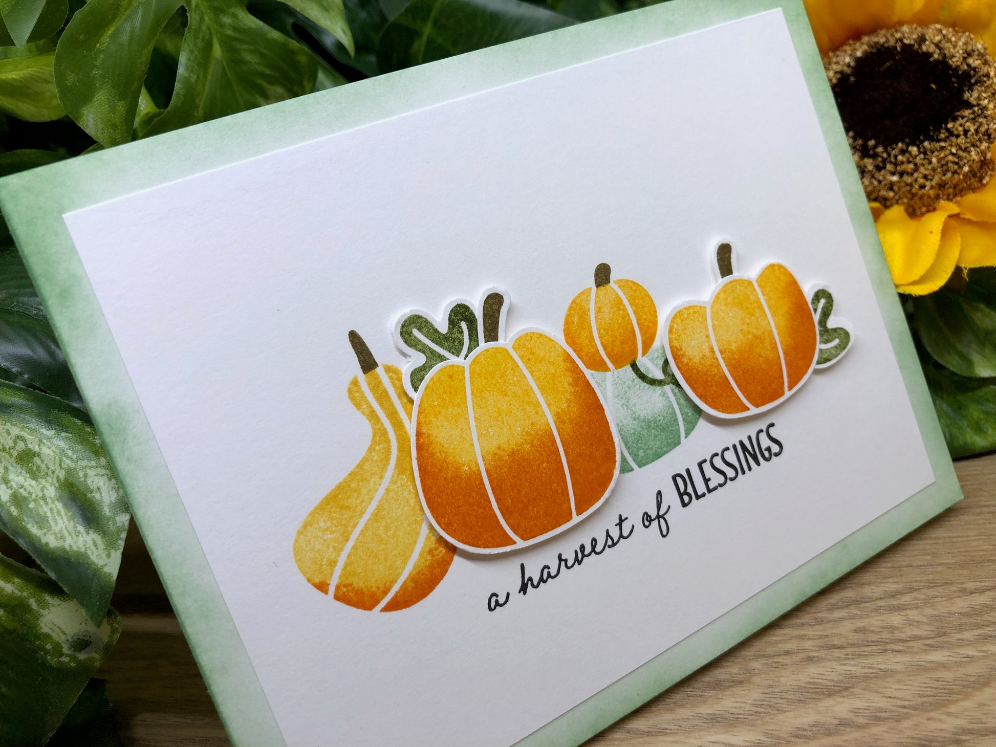 Send thanksgiving cheer to friends & family with this handmade pumpkin harvest card! Also great paired with a hostess gift.