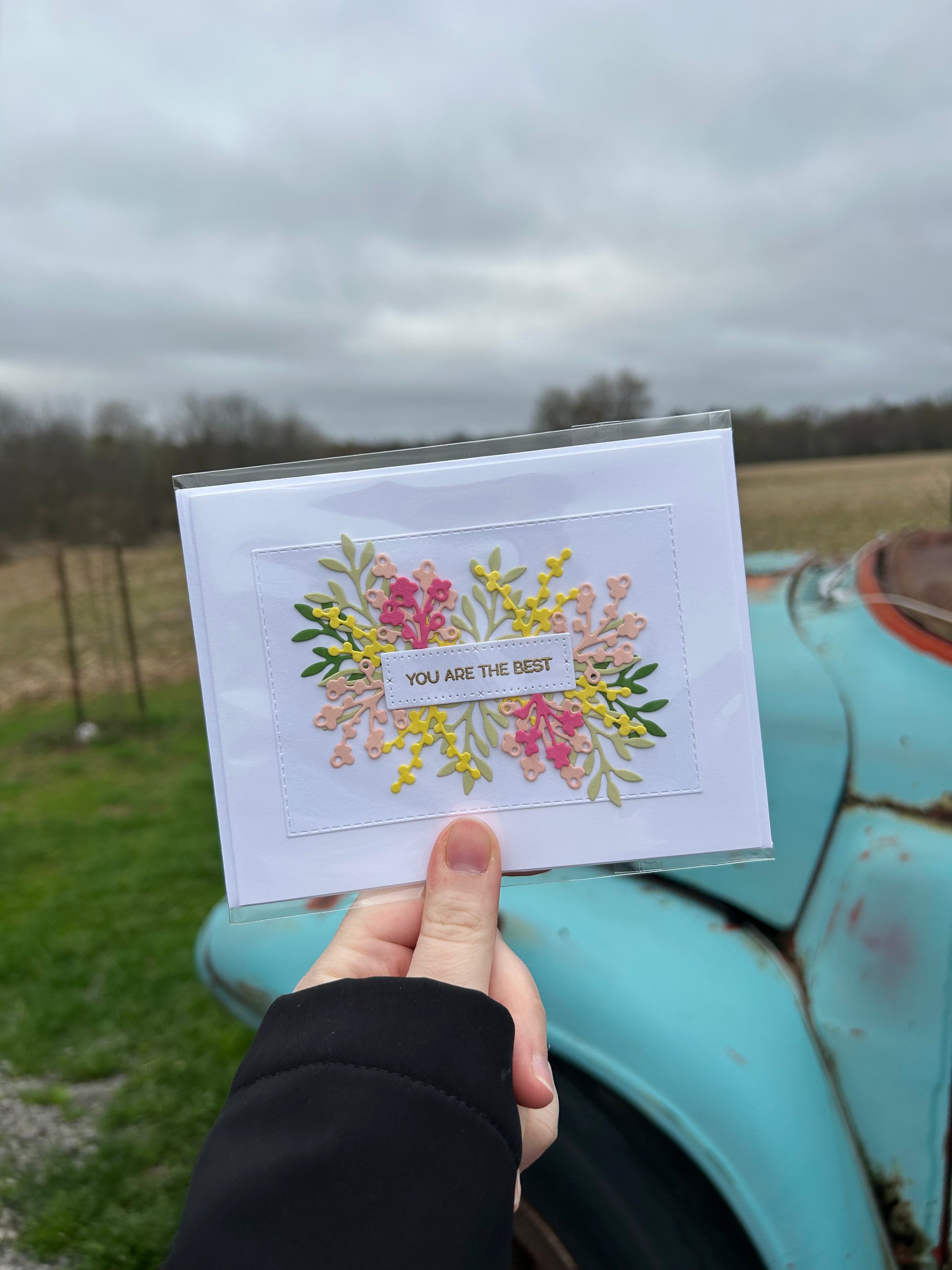 Celebrate the special woman in your life with our You Are The Best Handmade Card. Adorned with delicate florals and a heartfelt sentiment, this card is perfect for showing your appreciation to mom or your best friend. Handcrafted with care, this card is a one-of-a-kind way to express your love.